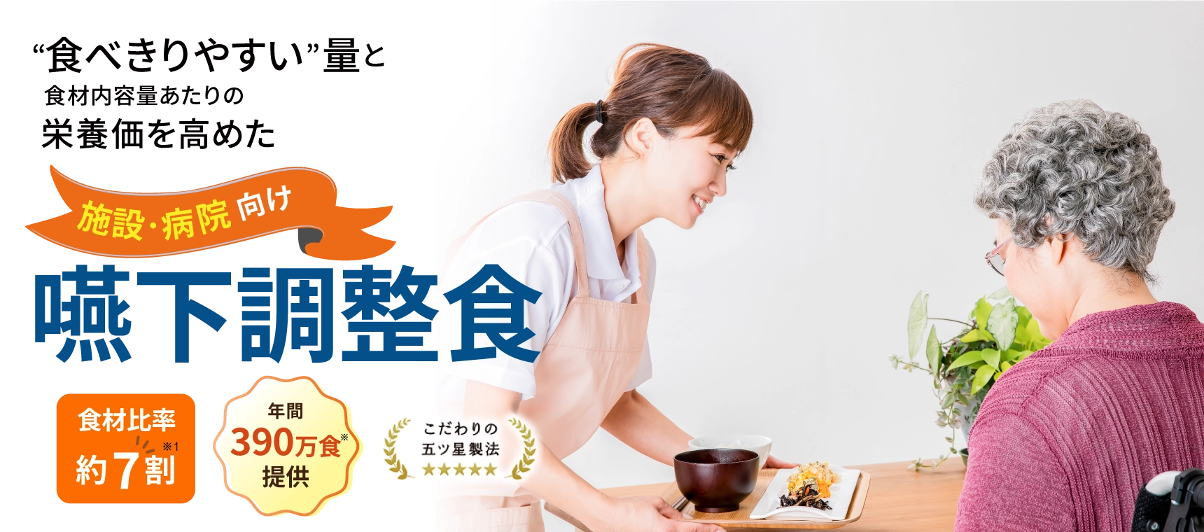 安全を追求したきざみ食やミキサー食は安全ではあるものの、どうしても水分を多めに使用しなければならず、「おいしくない」と言われ、栄養素も低下しがちです。