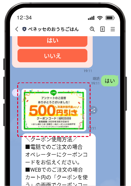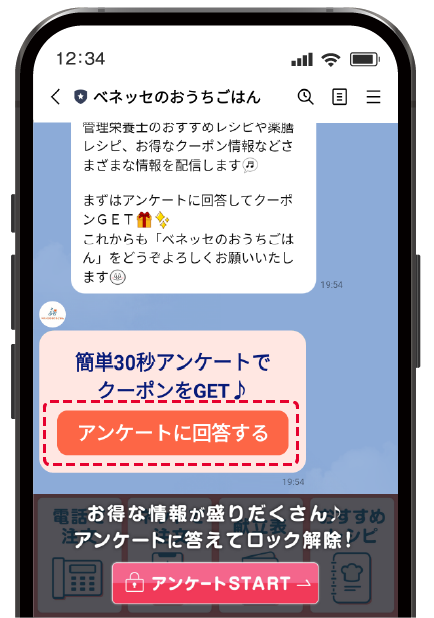 友だち追加した後に「アンケート」に最後までご回答いただいた方にクーポンをプレゼントしています。