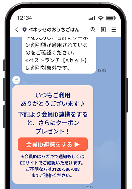 お客さまのLINEアカウントとベネッセのおうちごはんの情報を連携して紐づけることです。